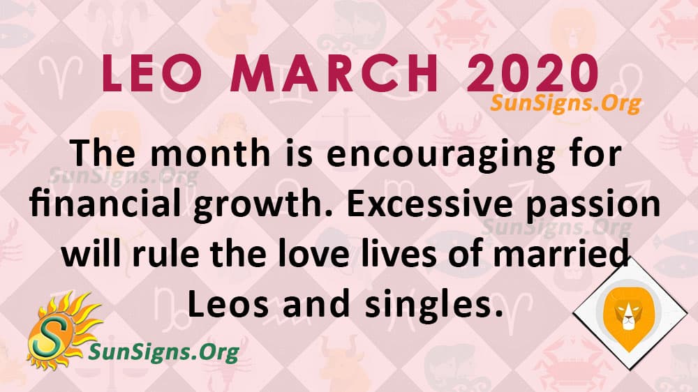 In March, you can worry about planning important, long-term projects without worries. You fix all matters so that it will be difficult to make even the smallest mistakes. Horoscope Leo March — career, love, finance, health, family read on…. March horoscope for Leo reveals that career will be an important project here besides family and psychological matters.